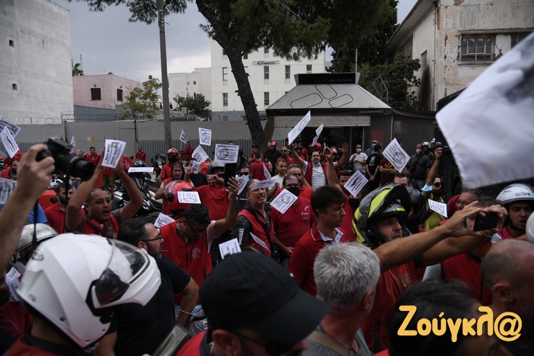 Εκεί υπήρχαν ισχυρές δυνάμεις των ΜΑΤ. Αντιπροσωπεία εργαζομένων πραγματοποίησε συνάντηση με μέλη της εταιρείας.