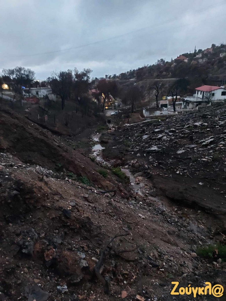Η Λία Γκαραγάνη, κάτοικος της Πεντέλης, σε μία ανάρτησή της πριν λίγες ημέρες παρατηρεί: «Μένω στην Πεντέλη τα τελευταία 16 χρόνια κοντά στο ρέμα της Περικλέους. Σήμερα το πρωί με μια ελαφριά βροχή το ρέμα γέμισε νερό, κινούμενο ορμητικά προς τα κάτω. Πρώτη φορά βλέπω τέτοια ένταση και βοή τα τελευταία 16 χρόνια. Είναι το αποτέλεσμα της καταστροφικής φωτιάς που δεν έχει ακόμα πλήρως ξεδιπλωθεί. Και αναρωτιέμαι εάν βρέξει όπως έβρεξε στην Ισπανία τι θα γίνει;».