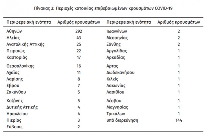 Όσον αφορά στις υπόλοιπες περιοχές, τουλάχιστον σε 28 από τις 74 περιφερειακές ενότητες της χώρας υπάρχουν πλέον επιβεβαιωμένα κρούσματα κορωνοϊού.