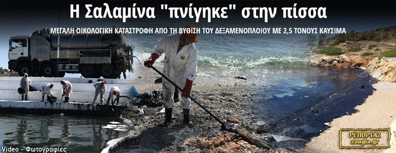 Μεγάλη οικολογική καταστροφή έχει προκληθεί στον Σαρωνικό μετά τη βύθιση του δεξαμενόπλοιου «ΑΓ.ΖΩΝΗ ΙΙ» το οποίο ήταν φορτωμένο με 2.570 τόνους καύσιμα. Σε μήκος 1,5 χιλιομέτρου, μεταξύ Κυνοσούρας και Σεληνίων, η θάλασσα έγινε μαύρη από τα πετρελαιοειδή και την πίσσα που διέρρευσαν.