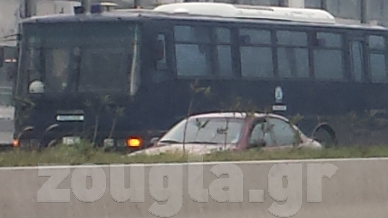 Κλούβα των ΜΑΤ και περιπολικά της αστυνομίας συνόδευαν την πομπή των τρακτέρ, καθώς και των λεωφορείων που μεταφέρουν τους παραγωγούς στο κέντρο της Αθήνας.
