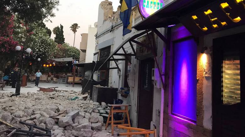 Το μέγεθος της καταστροφής που άφησε πίσω του ο σεισμός στην Κω αποκαλύφθηκε με το πρώτο φως της ημέρας. Στο νησί σημειώθηκαν μεγάλες καταστροφές με καταρρεύσεις ναών και πτώσεις παλιών κτιρίων.