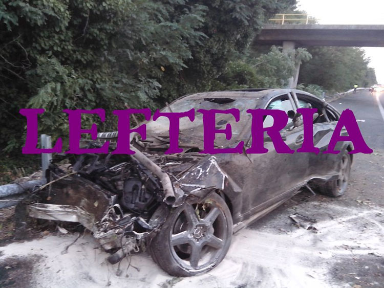 Από τη σύγκρουση των τριών οχημάτων προκλήθηκε φωτιά στο ένα, το οποίο και καταστράφηκε ολοσχερώς.