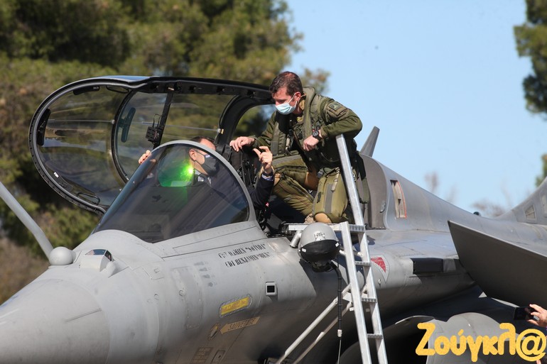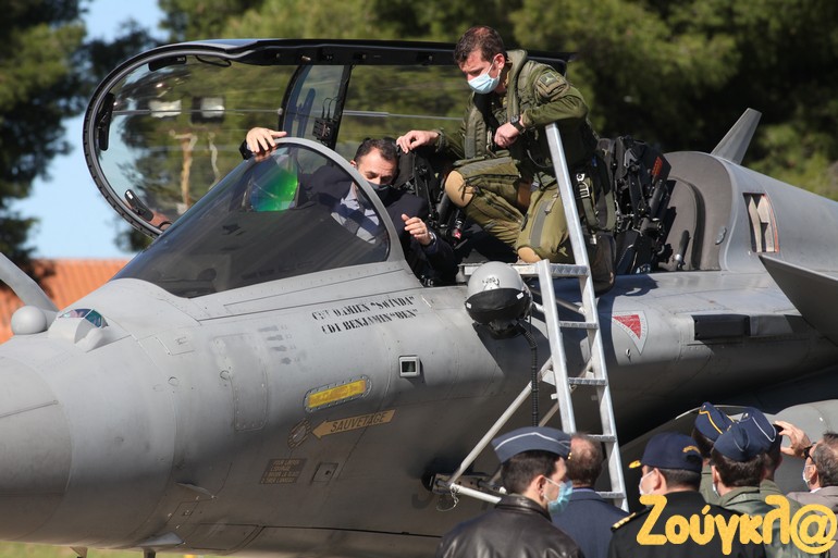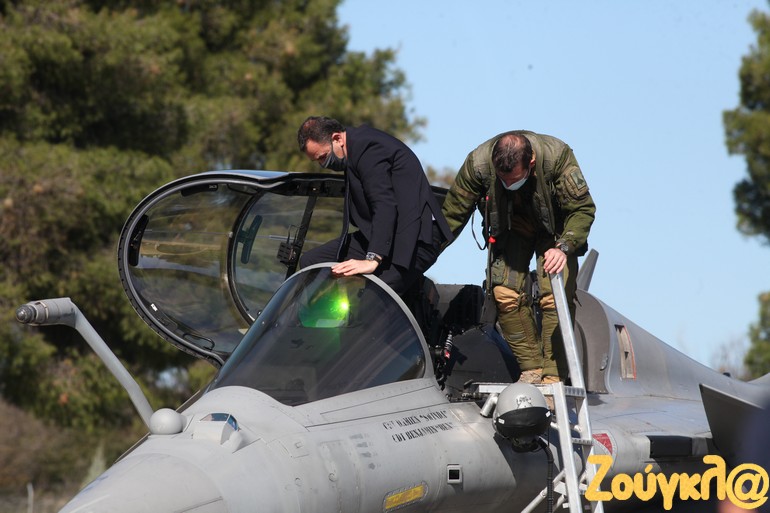 Ο Ν. Παναγιωτόπουλος και ο αρχηγός ΓΕΕΘΑ ανέβηκαν σε σταθμευμένο γαλλικό Rafale ενώ συνομίλησαν και με τους Γάλλους πιλότους των μαχητικών αεροσκαφών.