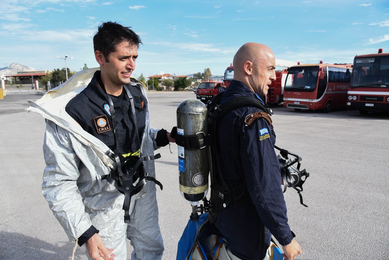 Παλεύουν με την αγριότητα της φύσης, βρίσκονται εκτεθειμένοι σε κάθε κίνδυνο μα πάνω απ΄όλα ρισκάρουν τη ζωή τουςO διοικητής της μονάδας, αρχιπύραρχος Στέφανος Κολοκούρης μας υποδέχθηκε αρχικά στο γραφείο του και στη συνέχεια μας ξενάγησε στους χώρους. Στην κάμερα της ηλεκτρονικής μας εφημερίδας, οι άνδρες της 1ης ΕΜΑΚ, μας δείχνουν ζωντανά αντιμετώπιση χημικής και βιολογικής απειλής, διάσωση επιζώντα με διασωστικό σκύλο, διάσωση σε πηγάδι αλλά και μεταφορά τραυματία από μεγάλο ύψος. Μιλούν ακόμα οι εξειδικευμένοι δύτες, ενώ στο φακό καταγράφονται τα οχήματα και τα εργαλεία που χρησιμοποιούνται. Εκτός από τις δύσκολες εντός Ελλάδας, η ΕΜΑΚ έχει συμμετοχή και σε διεθνείς αποστολές, σε κάποιες από τις οποίες μάλιστα έχει διακριθεί.