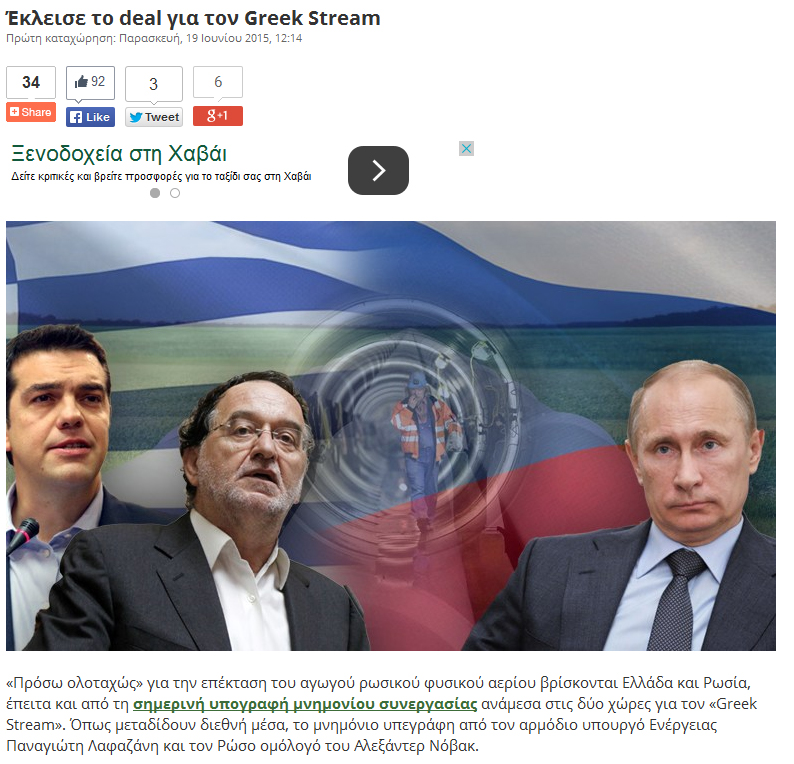 Χωρίς να έχει επιβεβαιωθεί κάτι επίσημα, γεγονός είναι ότι υπάρχει η ματαίωση της συμφωνίας ανάμεσα στην Gazprom και τη Saipem, ιταλική εταιρεία κατασκευής του υποθαλάσσιου αγωγού στη Μαύρη Θάλασσα. Η ιταλικών συμφερόντων επιχείρηση ειδοποιήθηκε από την Gazprom πως σταματά η συνεργασία τους.