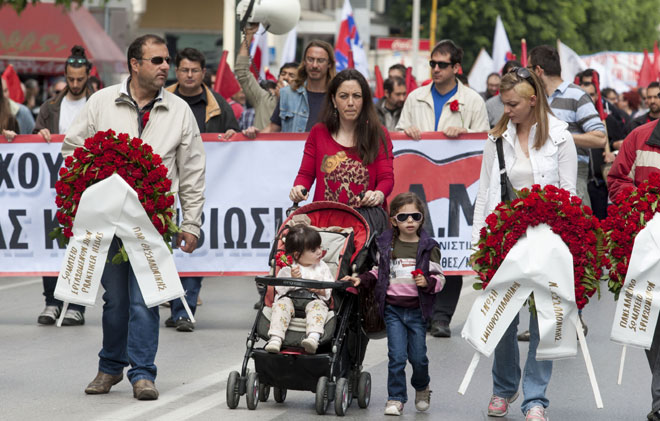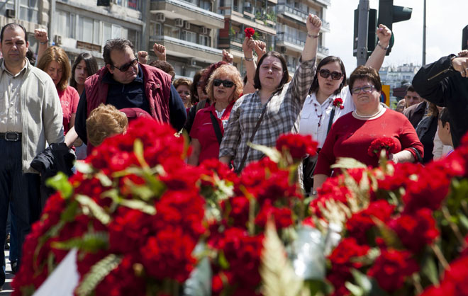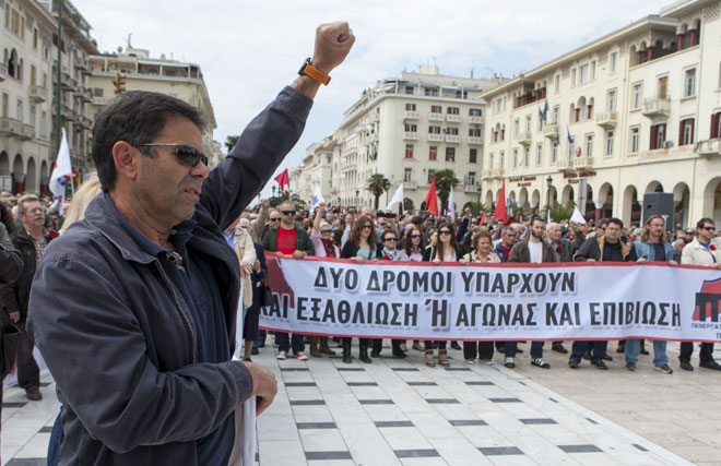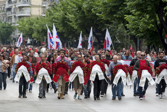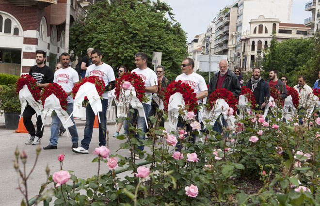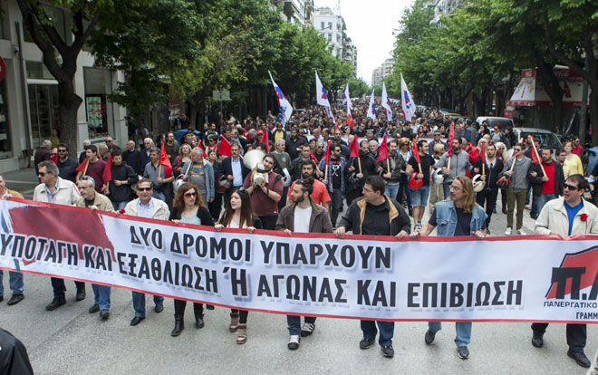 Στις 10.30 στο άγαλμα του Βενιζέλου  έδωσαν ραντεβού  τα μέλη του ΠΑΜΕ στη Θεσσαλονίκη, προκειμένου να τιμήσουν την εργατική Πρωτομαγιά. Από εκεί πραγματοποίησαν πορεία στους δρόμους της συμπρωτεύουσας.