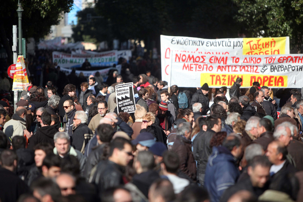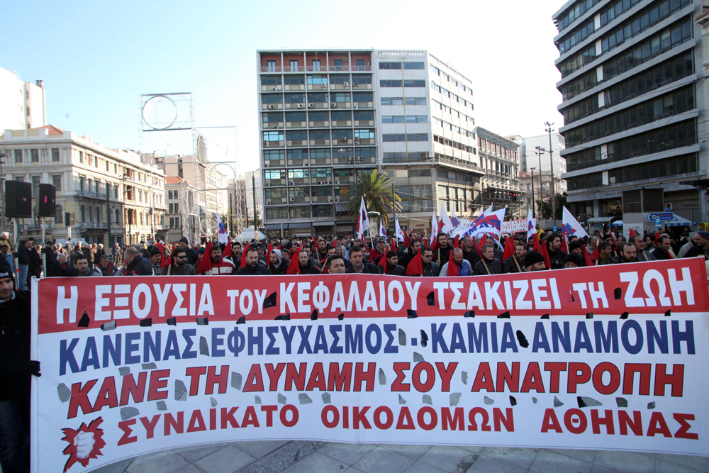 Συνδικαλιστές της ΓΣΕΕ, εργαζόμενοι, άνεργοι και μέλη του ΠΑΜΕ συγκεντρώθηκαν στην πλατεία Κλαυθμώνος και στην Ομόνοια αντίστοιχα.