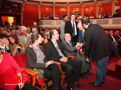 Όρθιοι και με χειροκροτήματα υποδέχθηκαν τον Αχαιό πολιτικό οι παριστάμενοι, ενώ η ατμόσφαιρα ήταν ιδιαίτερα φορτισμένη συναισθηματικά.