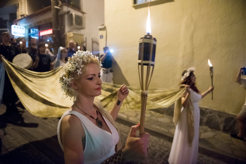 Ο λόγος ήταν τα εφετινά «Προμήθεια», η συνάντηση δηλαδή των δωδεκαθεϊστών και αρχαιολατρών. Η περίεργη πομπή στους δρόμους του Λιτοχώρου, που κατέληξε στο αμφιθέατρο του χωριού, ξένισε, παραξένεψε και έκανε πολλούς να απορούν, είχε ωστόσο ένα ενδιαφέρον. Μεταξύ άλλων και για το Associated Press, το οποίο κάλυψε το θέμα.