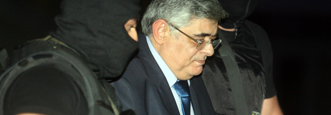 (Ο Ν. Μιχαλολιάκος οδηγείται από τη ΓΑΔΑ στον ανακριτή)