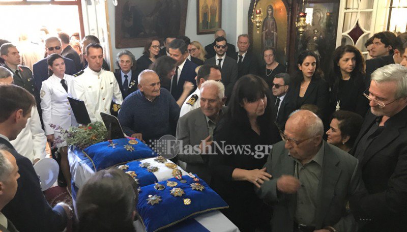 Την ελληνική σημαία με την οποία ήταν σκεπασμένο το φέρετρο παρέδωσε στον πρόεδρο της ΝΔ Κυριάκο Μητσοτάκη, αξιωματικός του στρατού, ενώ τα παράσημα του εκλιπόντα παραδόθηκαν στην κόρη του Ντόρα Μπακογιάννη.