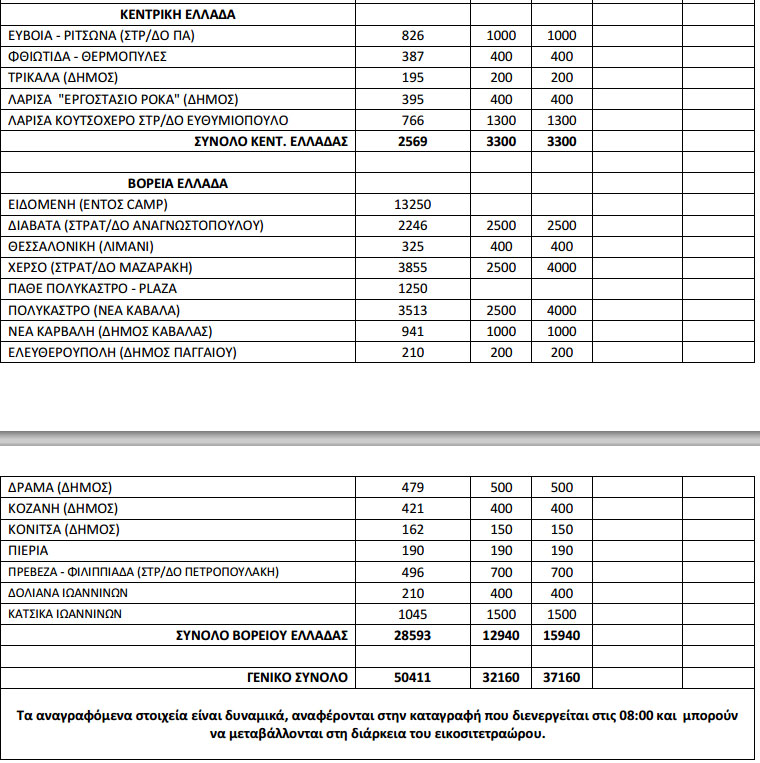 Το Συντονιστικό Όργανο Διαχείρισης της Προσφυγικής Κρίσης της κυβέρνησης έδωσε στη δημοσιότητα το πρωί της Δευτέρας τη συνοπτική κατάσταση προσφυγικών ροών.