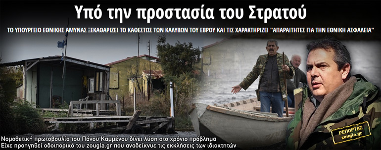 Το ζήτημα έχει απασχολήσει τον Υπουργό Εθνικής Άμυνας Πάνο Καμμένο, ο οποίος αναγνωρίζει ότι οι καλύβες αποτελούν απαραίτητα φυλάκια και παρατηρητήρια της Εθνοφυλακής. Σε δηλώσεις του στο zougla.gr, παρουσιάζεται δηκτικός αλλά και καθησυχαστικός για την κατάσταση: