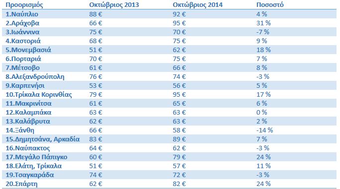 Η Αράχοβα είναι ο ακριβότερος προορισμός, με τη μέση τιμής κλίνης να αυξάνεται κατά 31% σε σχέση με το 2013