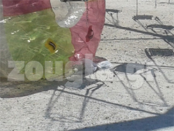 «Ένας αλλοδαπός υπάλληλος έβαλε τα δυο μας παιδιά μέσα σε μία κυλινδρική πλαστική μπάλα για να κυλίσουν στην πισίνα που είχε νερό. Αφού έπαιζαν τα παιδιά και ήμασταν κι εγώ και η σύζυγός μου μπροστά και τα βλέπαμε, ξαφνικά φύσηξε δυνατός αέρας και ανασήκωσε την πλαστική μπάλα στον αέρα, περίπου σε ύψος 10 μέτρων, και στη συνέχεια έπεσε στο έδαφος και σε απόσταση 10 μέτρων από την πισίνα».