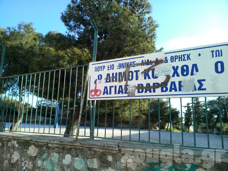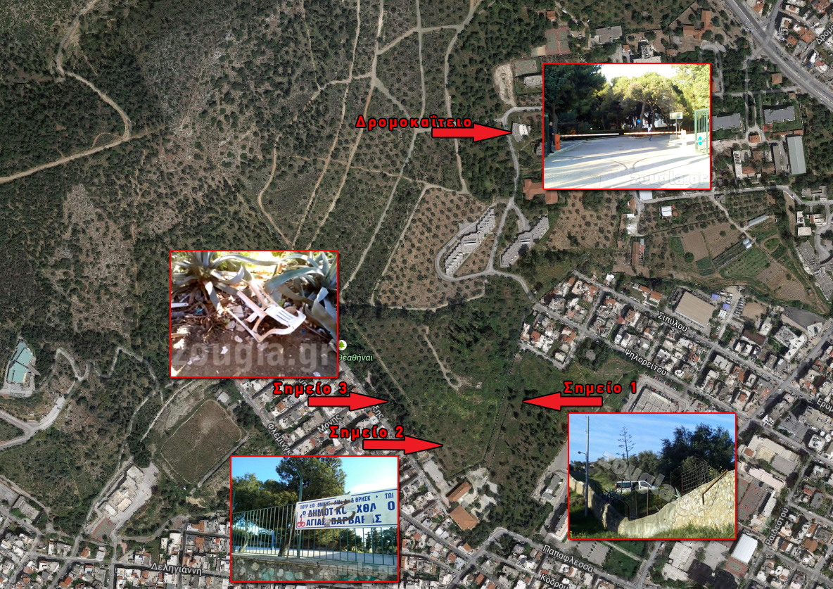 Στο βάθος ο μαντρότοιχος του Δρομοκαΐτειου στα σύνορα με το 1ο Δημοτικό Σχολείο Αγίας Βαρβάρας