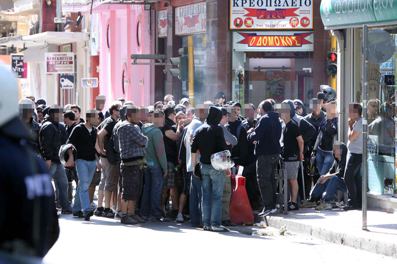 Οι οπαδοί του ΠΑΟΚ επιτέθηκαν στους οπαδούς της ΑΕΚ που βρίσκονταν στο σημείο, ενώ πέταξαν και μολότοφ.