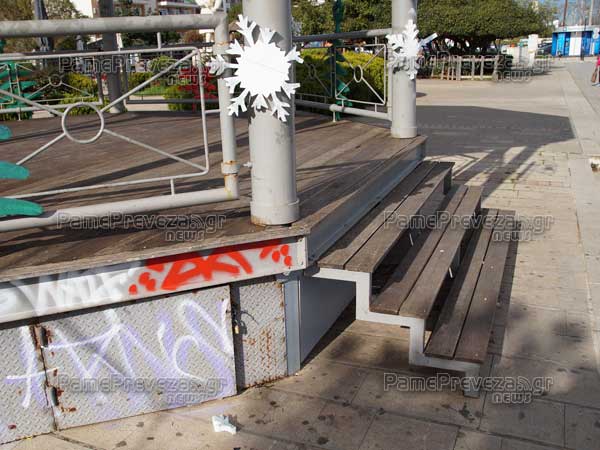 Τόσο το σπιτάκι, όσο και τα στολίδια από φελιζόλ στο κιόσκι δεν άντεξαν παρά μόνο μερικές ώρες…