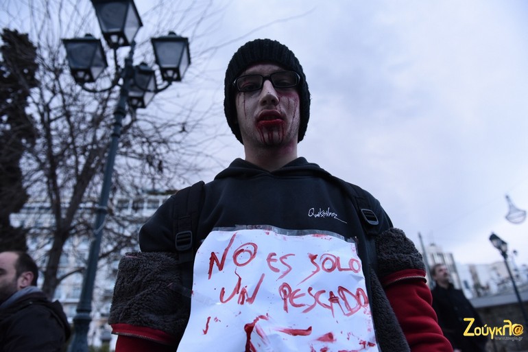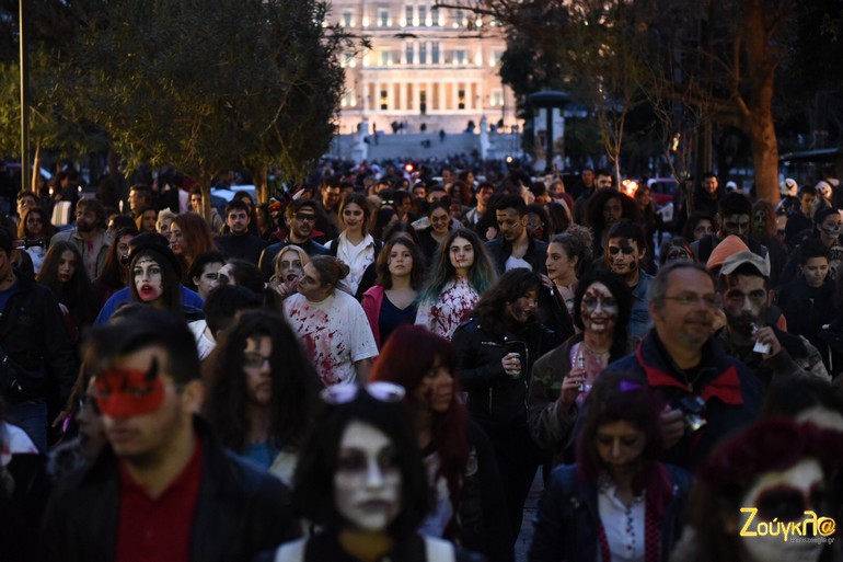 Παρέλαση από… ζόμπι πραγματοποιήθηκε το απόγευμα του Σαββάτου στο κέντρο της Αθήνας, στο πλαίσιο αντίστοιχων εκδηλώσεων που πραγματοποιούνται και σε άλλες πόλεις του κόσμου. Το «Zombie Walk Athens» πέτυχε το στόχο του, δηλαδή την… τρομοκράτηση των περαστικών, καθώς δεκάδες πολίτες επέλεξαν αυτόν τον τρόπο συμμετοχής στις καρναβαλικές εκδηλώσεις…