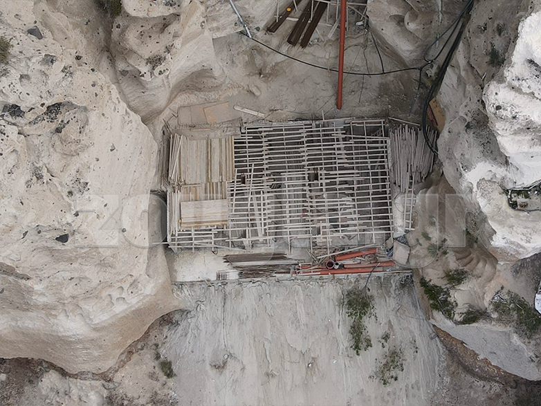 Σύμφωνα με πληροφορίες, στο συγκεκριμένο ξενοδοχείο η «σπηλιά» που δημιουργήθηκε κάτω από το υφιστάμενο κτίριο επενδύθηκε ήδη με εκτοξευμένο σκυρόδεμα, ώστε να δημιουργηθεί μια πλατφόρμα ικανή να σηκώσει νέες κολόνες για την επέκταση του χώρου, όπως βλέπετε και στις αποκλειστικές φωτογραφίες της «Ζούγκλας».