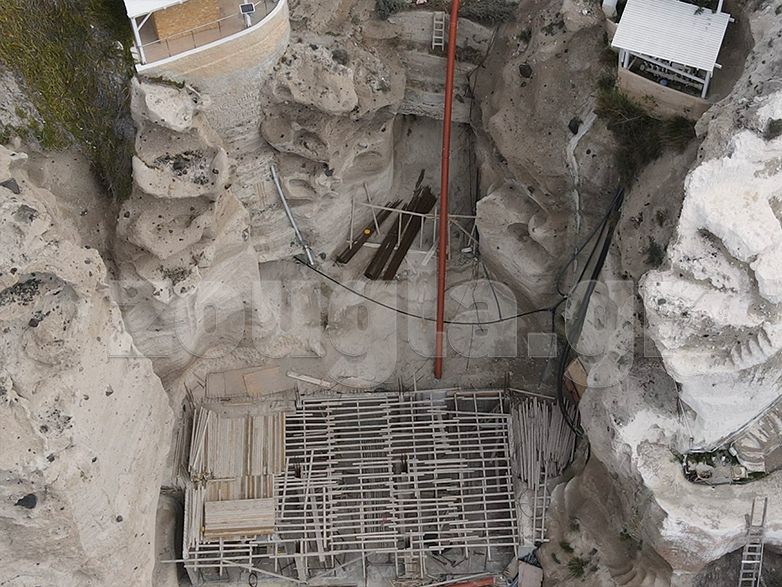 Σύμφωνα με πληροφορίες, στο συγκεκριμένο ξενοδοχείο η «σπηλιά» που δημιουργήθηκε κάτω από το υφιστάμενο κτίριο επενδύθηκε ήδη με εκτοξευμένο σκυρόδεμα, ώστε να δημιουργηθεί μια πλατφόρμα ικανή να σηκώσει νέες κολόνες για την επέκταση του χώρου.