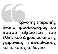 Σύμφωνα με έγγραφο που δημοσιεύτηκε στη «Διαύγεια» και φέρει την υπογραφή του αναπληρωτή Υπουργού Οικονομικών Χρήστου Σταϊκούρα, η επιτροπή αυτή δημιουργείται για «τον προσδιορισμό τυχόν ποσού αξιώσεων του Ελληνικού Δημοσίου από τις γερμανικές επανορθώσεις και το κατοχικό δάνειο».