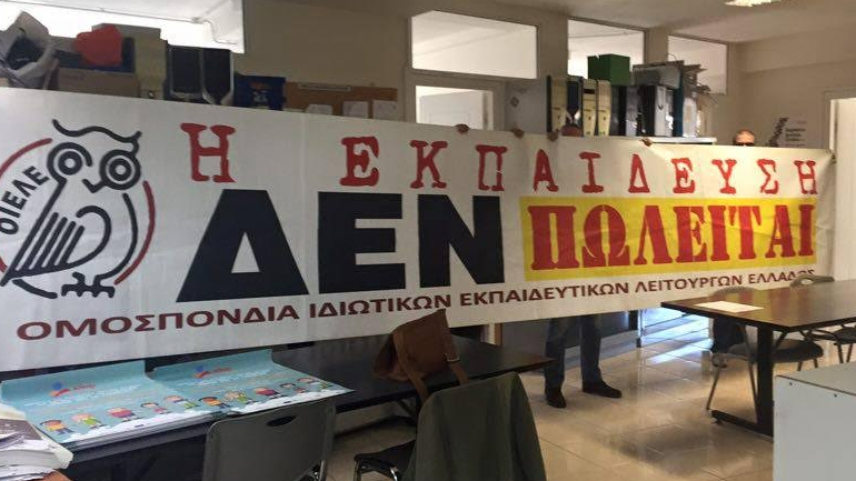 Η ΟΙΕΛΕ πραγματοποιεί, ημέρα της 24ωρης Γενικής Απεργίας, συμβολική κατάληψη στα γραφεία της Διεύθυνσης Α/μιας Εκπαίδευσης Ανατ. Αττικής διαμαρτυρόμενη για την απουσία σοβαρής εποπτείας στα ιδιωτικά σχολεία της περιοχής που αποθρασύνει ορισμένους σχολάρχες, οι οποίοι έχουν μεταβάλει τα σχολεία τους σε κέντρα ανομίας.