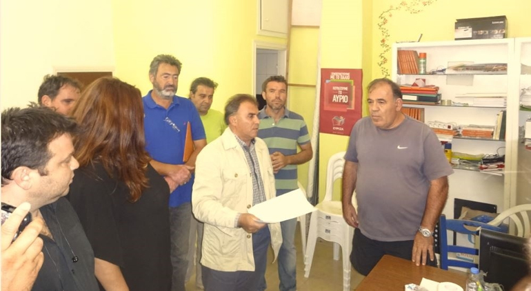 Ο δήμαρχος επέδωσε στους υπεύθυνους του γραφείου του ΣΥΡΙΖΑ το ψήφισμα από το δημοτικό συμβούλιο, προκειμένου να το μεταφέρουν με την σειρά τους στους αρμόδιους της υπόβάθμισης της πόλης και ζήτησε τη στήριξή τους στον αγώνα των Ιεραπετριτών.