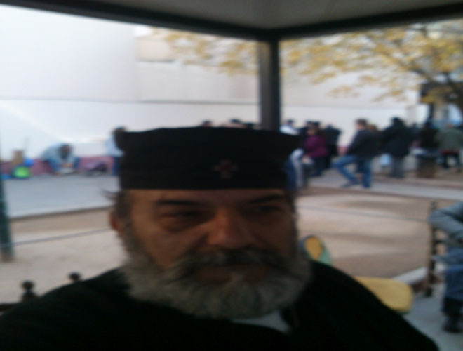 Ο πατέρας Νεκτάριος διανείμει φαγητό σε άπορους πολίτες στην Αττική, ενώ είναι γνωστός και από την ενεργό συμμετοχή του στο κίνημα των Αγανακτισμένων στο Σύνταγμα.