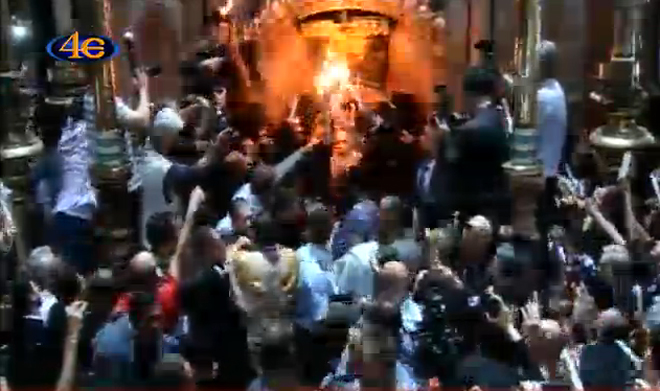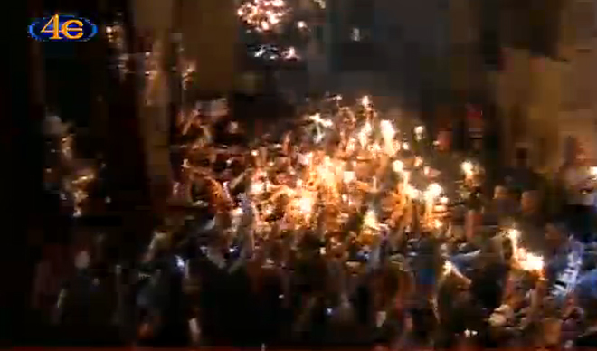 Λίγο μετά τις 14.00 ολοκληρώθηκε η τελετή αφής από τον Πανάγιο Τάφο με πλήθος κόσμου να ζητωκραυγάζει και να λαμβάνει το Άγιο Φως.