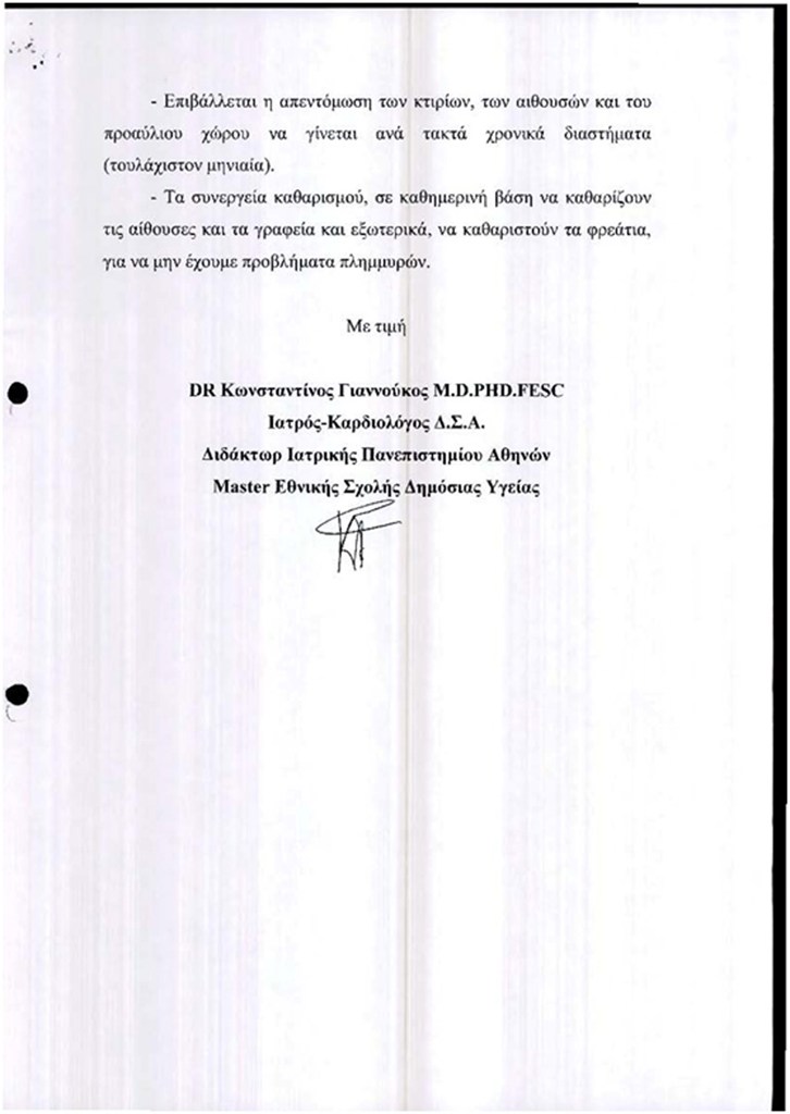 Όλα τα παραπάνω αποτυπώθηκαν σε Έκθεση που συντάχθηκε από τον ιατρό και παραδόθηκε στον ΔΣΑ στις 11.11.2016. Άμεσα, η ως άνω έκθεση εστάλη αρμοδίως στις 14.11.2016 στον Υπουργό Δικαιοσύνης και στους Προϊστάμενους του Πρωτοδικείου και της Εισαγγελίας Πρωτοδικών Αθηνών.