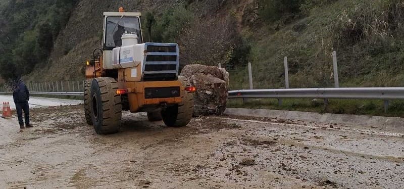 Ένας μεγάλου μεγέθους βράχος «έφυγε» από το βουνό και κατέληξε στο οδόστρωμα στην Εγνατία οδό, μεταξύ Ελευθεροχωρίου και Παραμυθιάς, στο ρεύμα προς Ηγουμενίτσα.