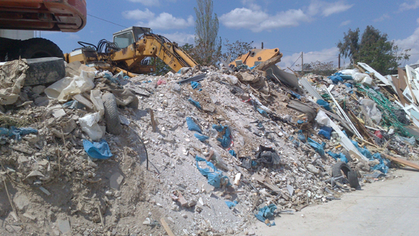 Ειδικότερα από τον έλεγχο που διενήργησαν αστυνομικοί του Τμήματος Περιβαλλοντικής Προστασίας, παρουσία Περιβαλλοντολόγων της Διεύθυνσης Περιβάλλοντος της Περιφέρειας Αττικής, διαπιστώθηκε ότι εντός περιφραγμένου οικόπεδου εκτάσεως 4,5 στρεμμάτων περίπου, υπήρχαν συσσωρευμένα απόβλητα (μπάζα, χώματα, γενικά υλικά από κατεδαφίσεις και εκσκαφές, πλακάκια, νάιλον, διάφορα πλαστικά, μικρές ποσότητες μετάλλων, πλαστικά καλώδια, μπαταρίες οχημάτων χωρίς υγρά και μεγάλες ποσότητες από ξύλινες κατασκευές) αποθηκευμένα επί του εδάφους, σε σωρούς ύψους έως και τριών μέτρων περίπου. Για την απόθεση των παραπάνω αποβλήτων επί του εδάφους δεν είχαν ληφθεί τα απαραίτητα μέτρα προστασίας με αποτέλεσμα να προκαλείται ρύπανση του περιβάλλοντος και περιβαλλοντική αλλοίωση του τοπίου.