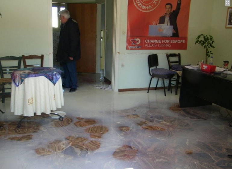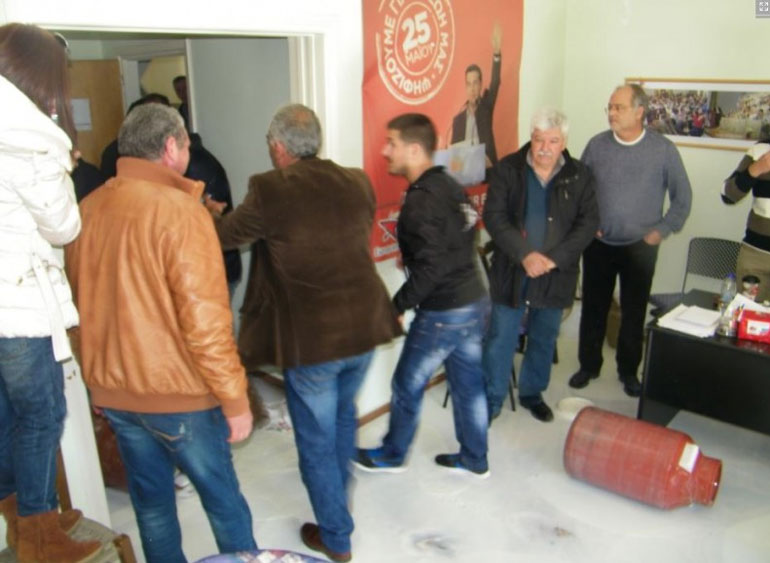 Γάλα στο πάτωμα έριξαν κτηνοτρόφοι που μπήκαν (μαζί με αγρότες) το μεσημέρι της Παρασκευής στα γραφεία του ΣΥΡΙΖΑ στο Ρέθυμνο, εκφράζοντας με αυτόν τον τρόπο τη διαμαρτυρία τους για τα προωθούμενα μέτρα που επιβαρύνουν το εισόδημά τους και αλλάζουν άρδην όσα ισχύουν στην κοινωνική ασφάλιση.