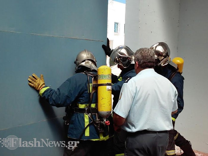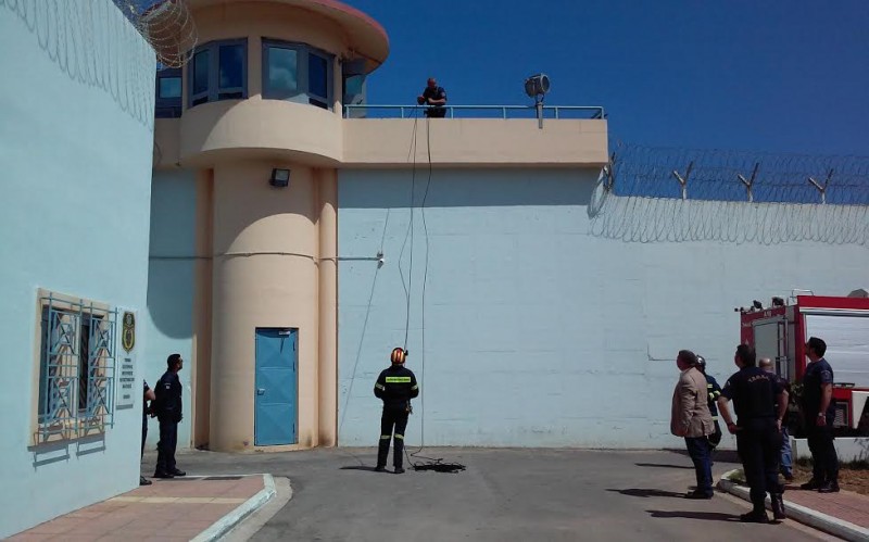 Απο τον Διευθυντή της φυλακής κ.Γιώργο Κονταξάκη ενημερώνονται τα πληρώματα της Πυροσβεστικής για το πρόβλημα και άμεσα ένας πυροσβέστης αναρριχάται απο τον τείχο της φυλακής, μπαίνει μέσα και βοηθά στο να ανοίξει η κεντρική πόρτα και να εισέλθουν τα οχήματα της Πυροσβεστικής και ασθενοφόρο του ΕΚΑΒ.