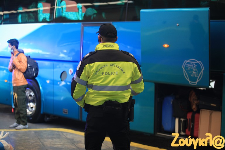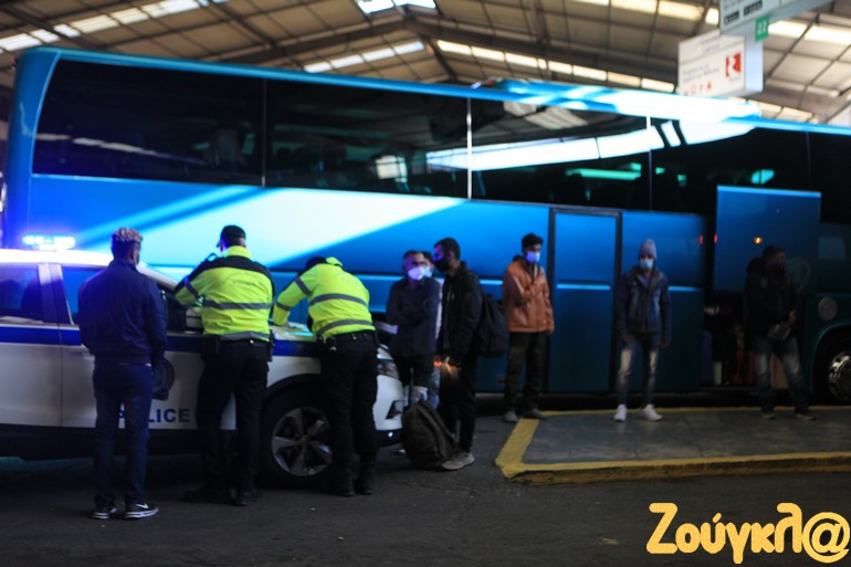 Οι άνδρες της ΕΛ.ΑΣ. για να περιορίσουν ένα ενδεχόμενο κύμα φυγής των Αθηναίων προς τις ιδιαίτερες πατρίδες τους, που θα ευνοούσε τον συνωστισμό και συνεπώς τη μετάδοση του Covid, πραγματοποιούσαν στον σταθμό λεωφορείων στοχευμένους ελέγχους, ζητώντας από τους επιβάτες τα απαραίτητα δικαιολογητικά.