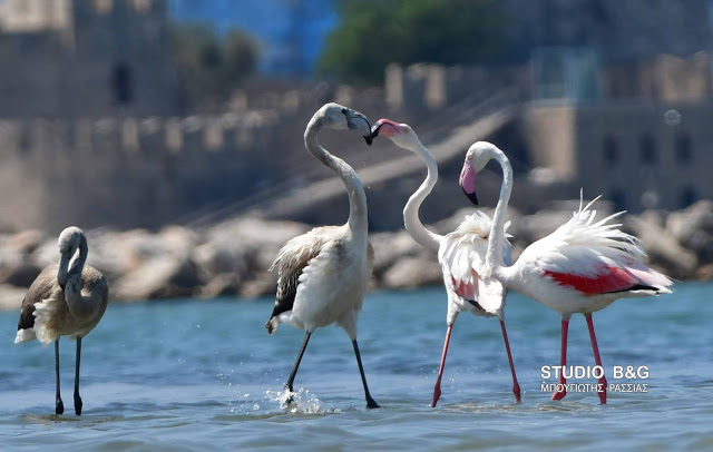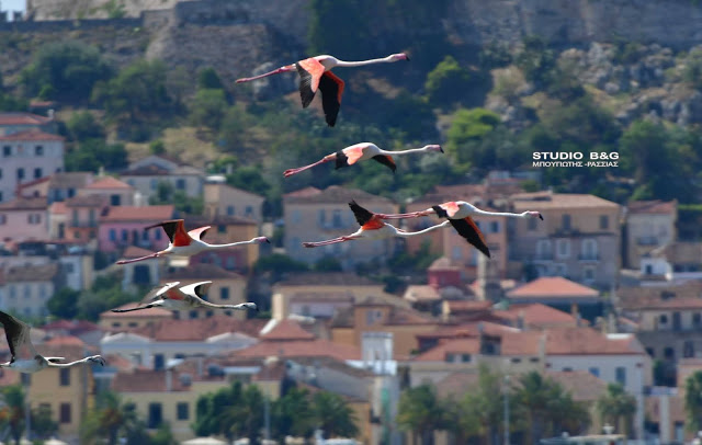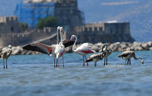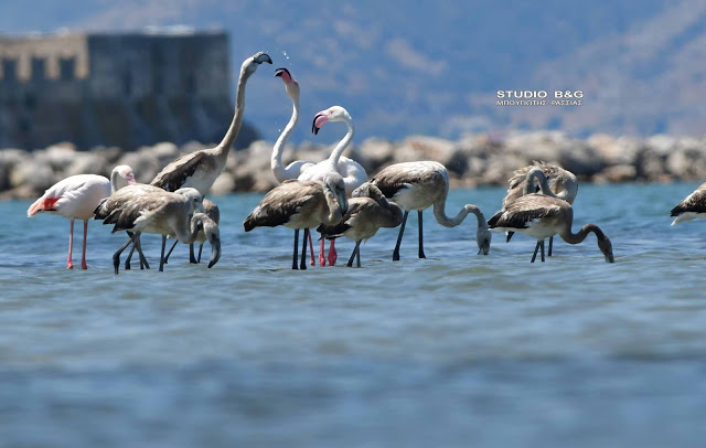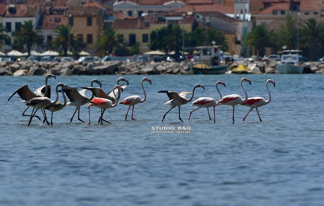 Τα πανέμορφα φλαμίνγκο, με το υπέροχο ροζ χρώμα τους, έκαναν τους πάντες να σταθούν και να τα θαυμάσουν στη πρωτεύουσα της Αργολίδας το Ναύπλιο.