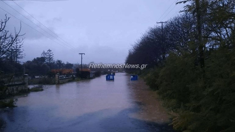 Επίσης, στην είσοδο του Ρεθύμνου από το Ηράκλειο, λόγω της παρατεταμένης βροχόπτωσης έχουν σχηματιστεί μεγάλες λακκούβες με νερά οι οποίες είναι επικίνδυνες καθώς επίσης και μικροί χείμαρροι επί του οδοστρώματος από την έλευση των ομβρίων υδάτων που κινούνται από τα ορεινά τμήματα και τις πλαγιές προς τη θάλασσα.