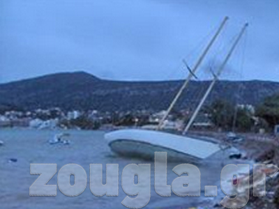 Η κακοκαιρία έπληξε και το Πόρτο Ράφτη, καθώς η θάλασσα στην κυριολεξία βγήκε στην στεριά. Οι άνεμοι ήταν τόσο δυνατοί που ακόμα και κάποια ιστιοφόρα που βρίσκονταν στην παραλία λίγο έλλειψε να βγουν στο δρόμο.