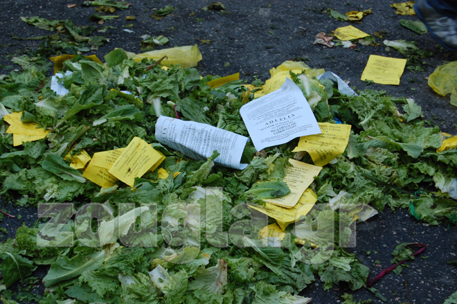Τα προϊόντα (σ.σ.: μαρούλια, ντομάτες, κρεμμύδια, πατάτες και πορτοκάλια) τελείωσαν γρήγορα και οι απογοητευμένοι πολίτες διαπληκτίζονταν άλλοτε με τους πωλητές των λαϊκών αγορών και άλλοτε με τους δημοσιογράφους.