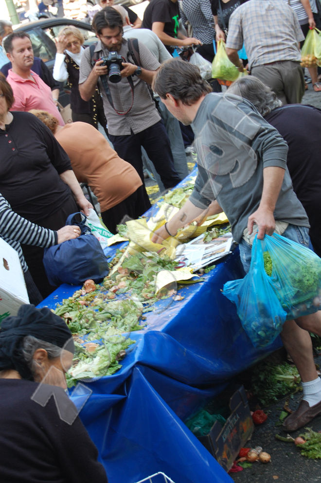 Οι εικόνες που διαδραματίστηκαν στο Μεταξουργείο είναι θλιβερές, με τους πολίτες να μαζεύουν ακόμη και από τον δρόμο τα πατημένα μαρούλια και τα κρεμμύδια. Έλληνες και μετανάστες είχαν ανάγκη να πάρουν ακόμη και από τα υπολείμματα.
