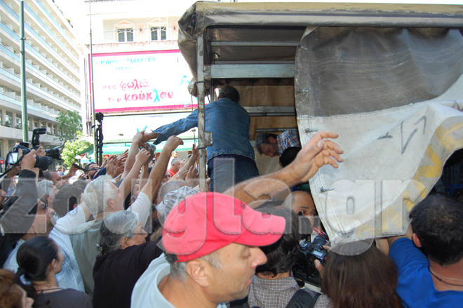 Απίστευτες σκηνές, που θα κάνουν τον γύρο του κόσμου, εκτυλίχθηκαν σήμερα το πρωί έξω από τον σταθμό του μετρό στο Μεταξουργείο, κατά τη δωρεάν διανομή τροφίμων από παραγωγούς και επαγγελματίες των λαϊκών αγορών, στο πλαίσιο της διαμαρτυρίας τους για το άνοιγμα του επαγγέλματός τους.