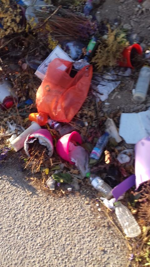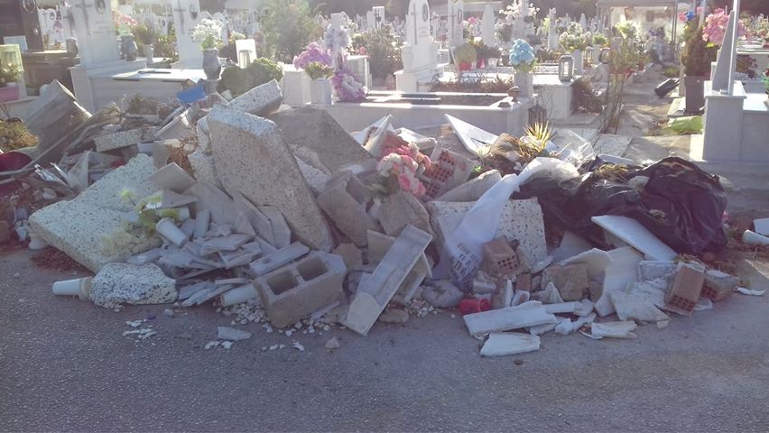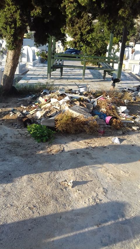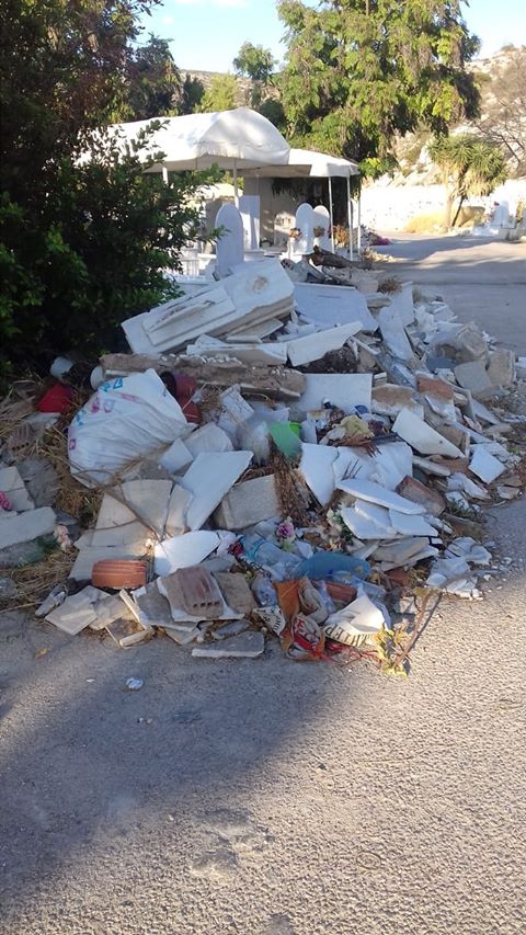 Μπάζα, σπασμένα μάρμαρα από τάφους, κατεστραμμένα λουλούδια, σακούλες, μπουκάλια και απορρίμματα κάθε είδους μπορεί να βρει κάποιος στο νεκροταφείο στο Σχιστό, όπως κατέγραψε ο φακός του keratsinivoice.blogspot.com.