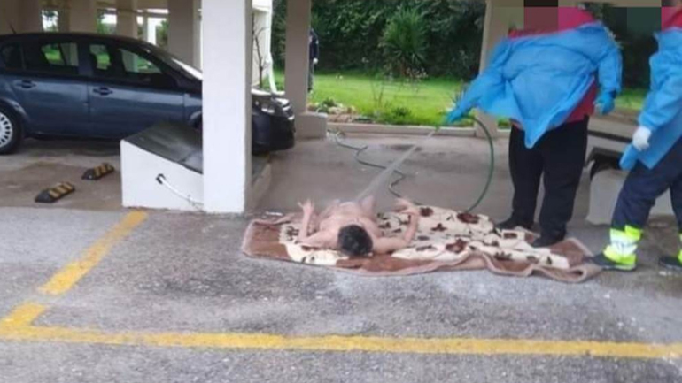 Τον γύρο του διαδικτύου κάνει τις τελευταίες ώρες μία σοκαριστική εικόνα ντροπής και απάνθρωπης συμπεριφοράς δύο ατόμων σε βάρος μίας ηλικιωμένης γυναίκας που φέρεται να αντιμετωπίζει ψυχολογικά προβλήματα. Πλήρωμα του δημοτικού ασθενοφόρου, φαίνεται να πλένει την ηλικιωμένη γυναίκα με το λάστιχο, ξαπλωμένη γυμνή σε μία κουβέρτα, σε πυλωτή – γκαράζ πολυκατοικίας, στην περιοχή του Ωρωπού.