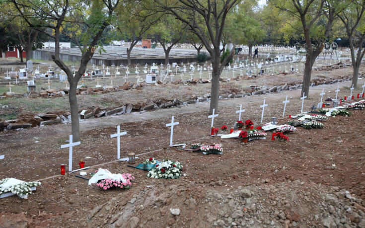 Ίδια εικόνα επικρατεί τόσο στην περιοχή της Θέρμης όσο και στον Εύοσμο. Δεκάδες νέοι τάφοι, ο ένας δίπλα στον άλλο, έχουν σκαφτεί, με στεφάνια, λίγα λουλούδια και προσωρινούς σταυρούς…