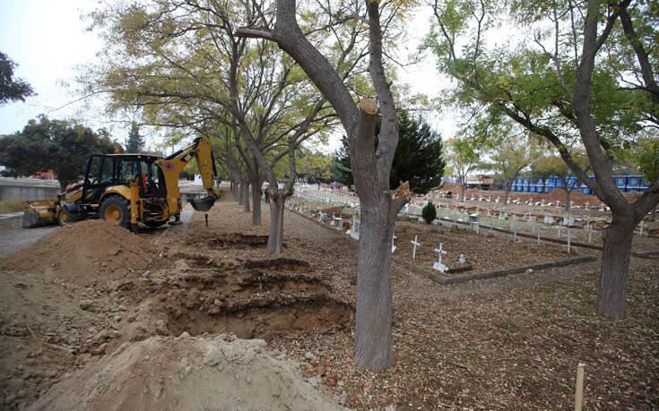 Στα κοιμητήρια, οι τάφοι για νεκρούς από κορωνοϊό βρίσκονται σχεδόν απομονωμένοι από το υπόλοιπο νεκροταφείο.