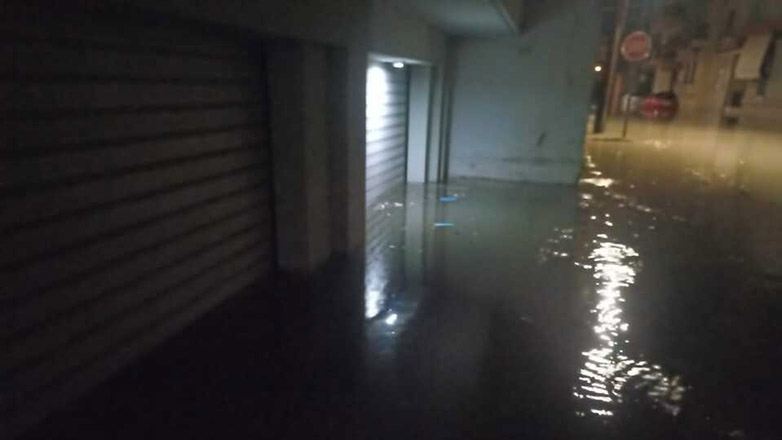 Στη συμβολή των οδών Κατακόλου και Ερυθρού Σταύρου, στο παλαιό νοσοκομείο, το νερό πλημμύρισε τον δρόμο, καθιστώντας τον αδιάβατο.