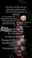 «Πηγαίνετε και κάψτε της το σπίτι», «Πώς νιώθεις που σε ψάχνει όλη η Ελλάδα», «Μάθαμε που μένει και πάμε για έκπληξη», «Από Δευτέρα θα έχεις 300 άτομα έξω από το σχολείο», είναι μόνο μερικές από τις φράσεις που βλέπουμε γραμμένες στις αναρτήσεις οι οποίες συνοδεύονται με τις φωτογραφίες και τα προσωπικά στοιχεία των κοριτσιών. Mάλιστα, ορισμένοι ισχυρίζονται πως εντόπισαν και ξυλοκόπησαν μια από τις δράστιδες.
