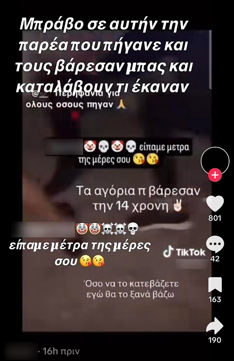 Σοκ προκαλούν βίντεο που έχουν ανεβάσει ανήλικοι στο TikTok μέσω των οποίων εξαπολύουν απειλές προς τις δράστιδες του ξυλοδαρμού της 14χρονης στην Γλυφάδα. Συμμαθητές αλλά και παιδιά από όλη την χώρα κάνουν λόγο για εκδίκηση την οποία θα επιχειρήσουν να πάρουν ενώ δημοσιοποιούν ονόματα, τηλέφωνα και διευθύνσεις των κοριτσιών καλώντας σε συντονισμένη επίθεση εναντίον τους.